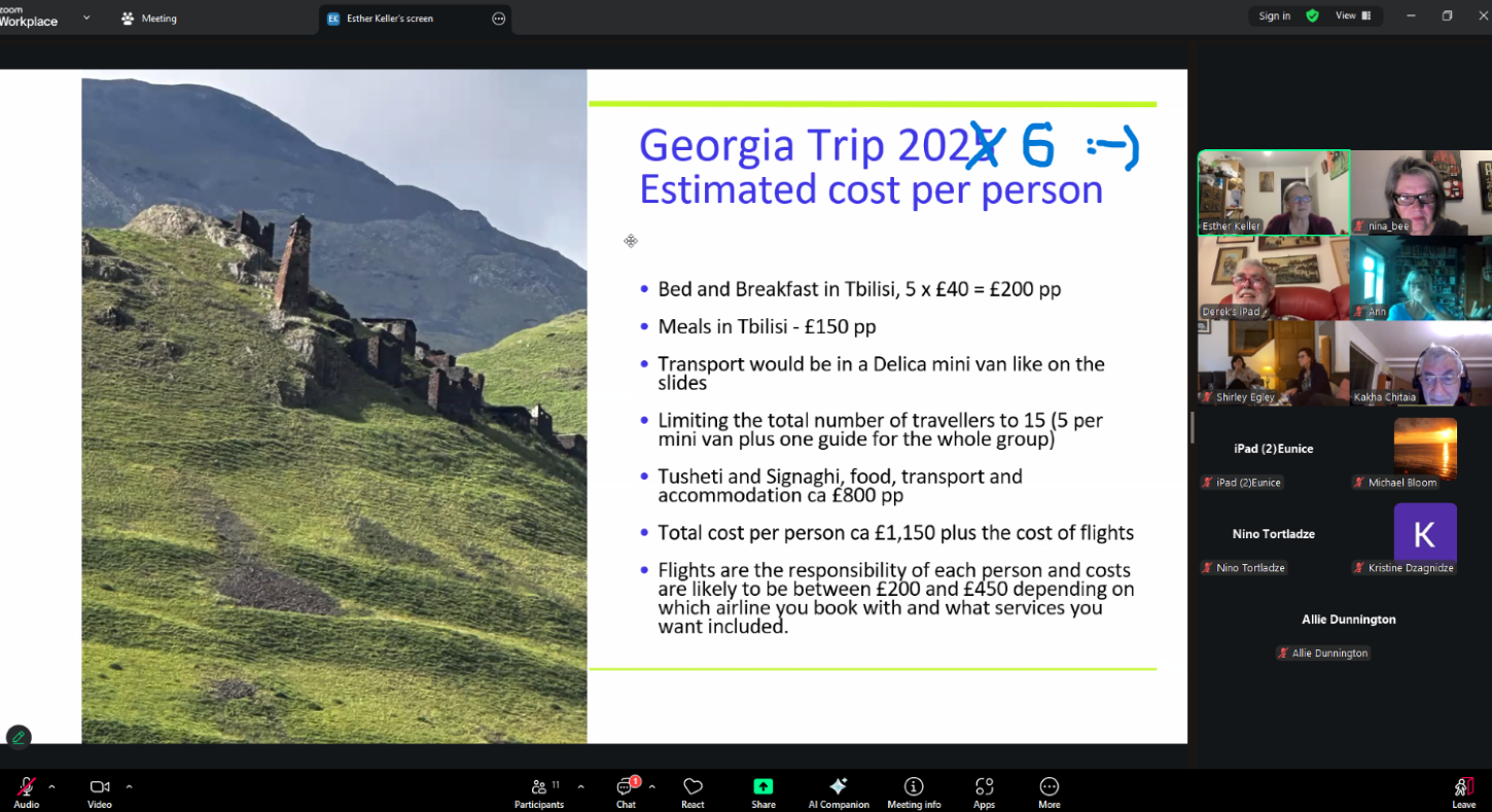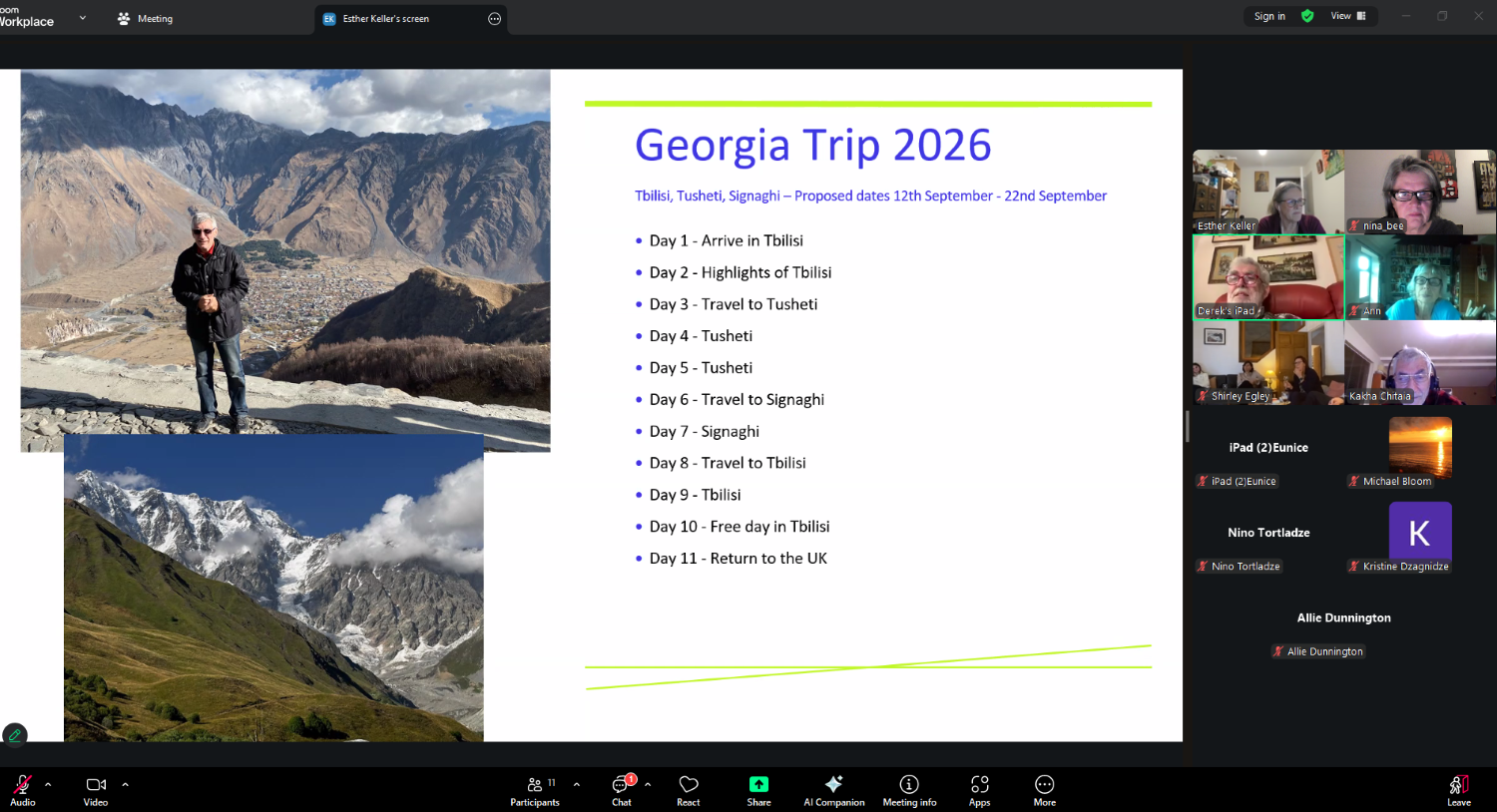 Participants of the Zoom meeting greatly enjoyed the stunning slides showcasing Georgia’s spectacular landscapes. The talk also introduced the trip to Georgia that the BTA is planning for September next year, sparking much interest among attendees